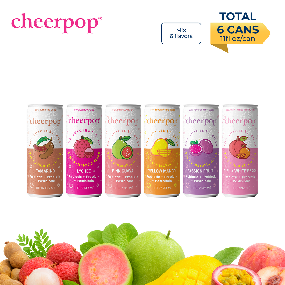 The Fruit Juice Soda: Passion Fruit/ Yellow Mango/ Lychee/ Pink Guava/ Tamarind/ Yuzu + White Peach