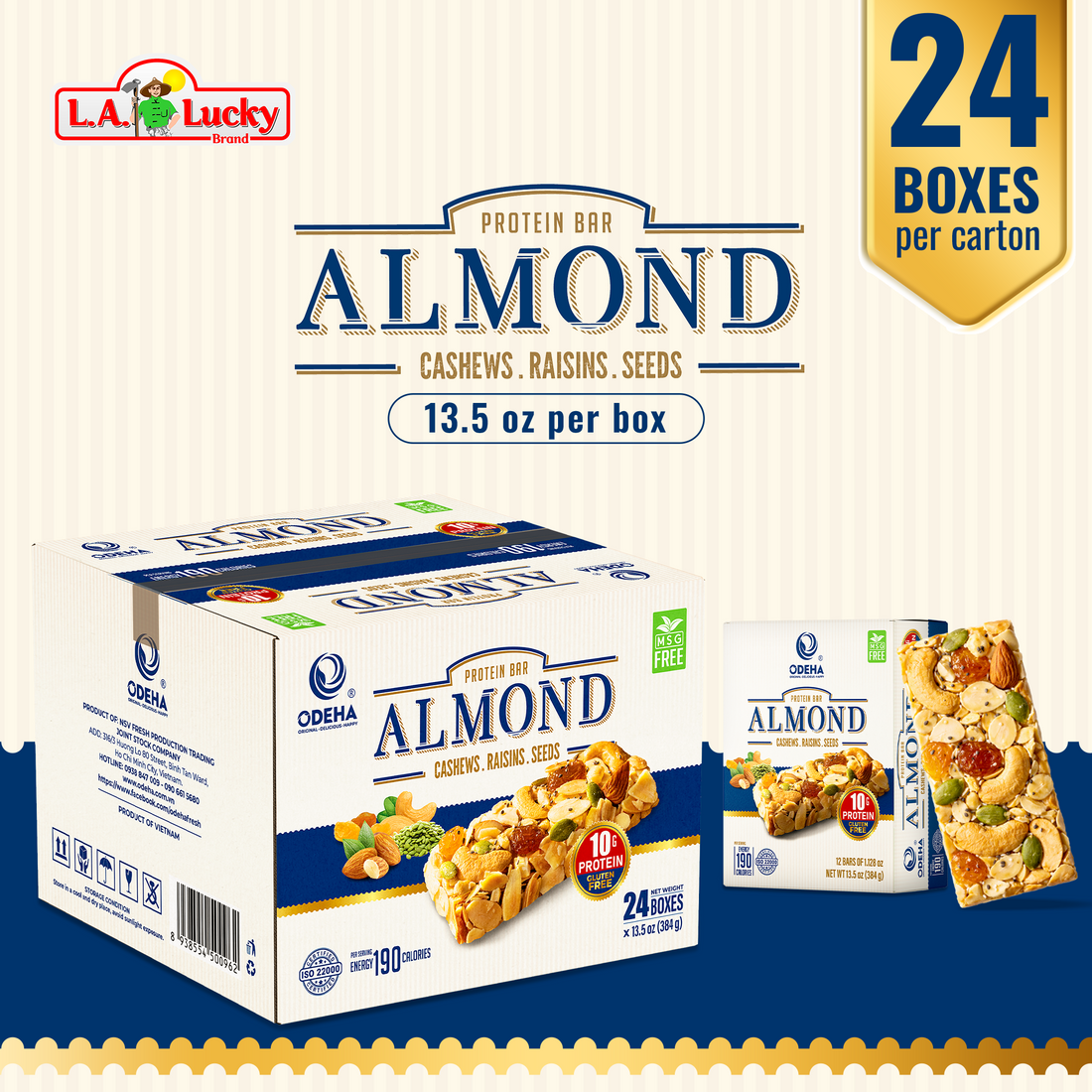 ODEHA Almond Protein Bar (High Protein Snack with Nuts & Seeds) - 12 Bars Box – Case of 24 Boxes
