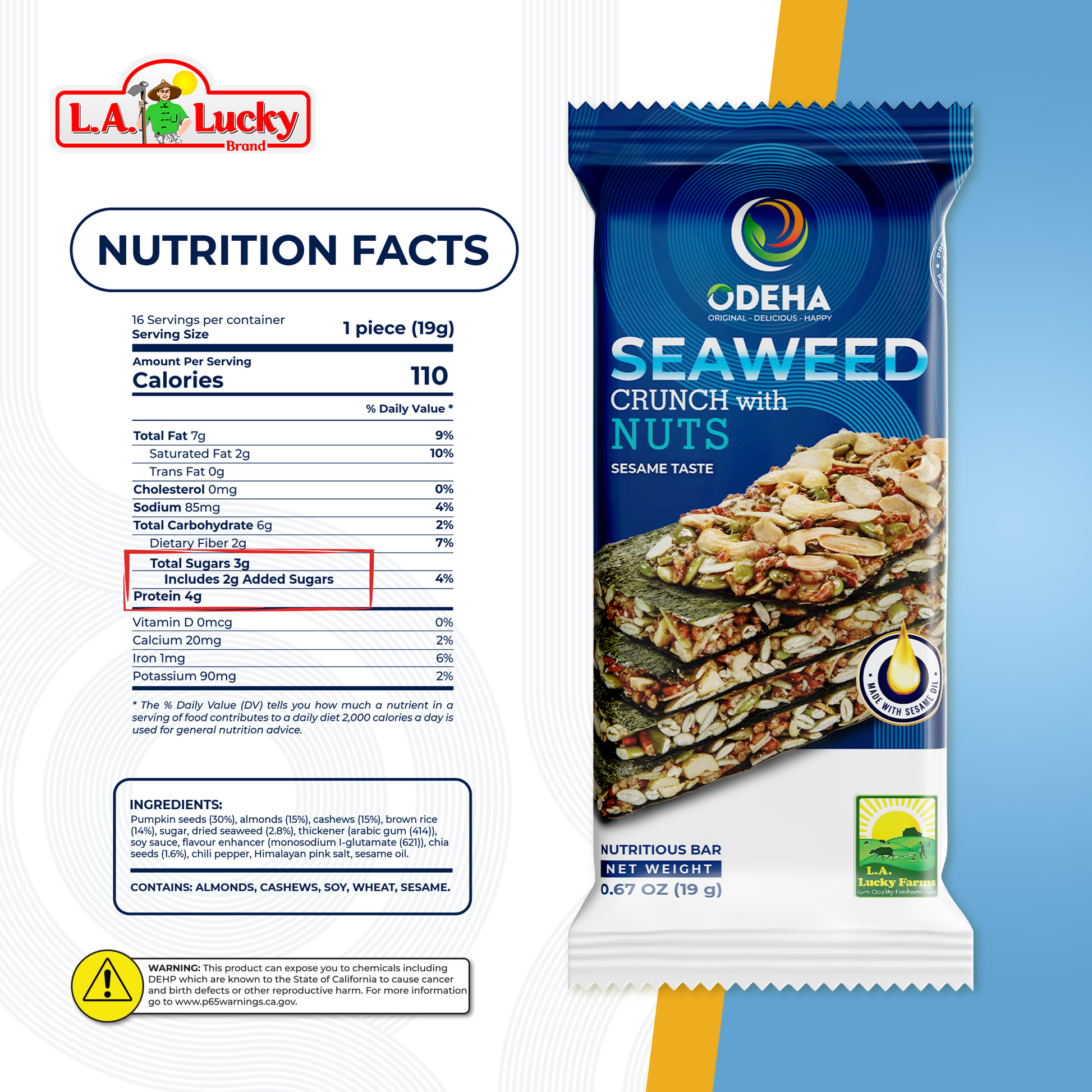 ODEHA Seaweed Crunch with Nuts - Sesame Taste – Pack of 5