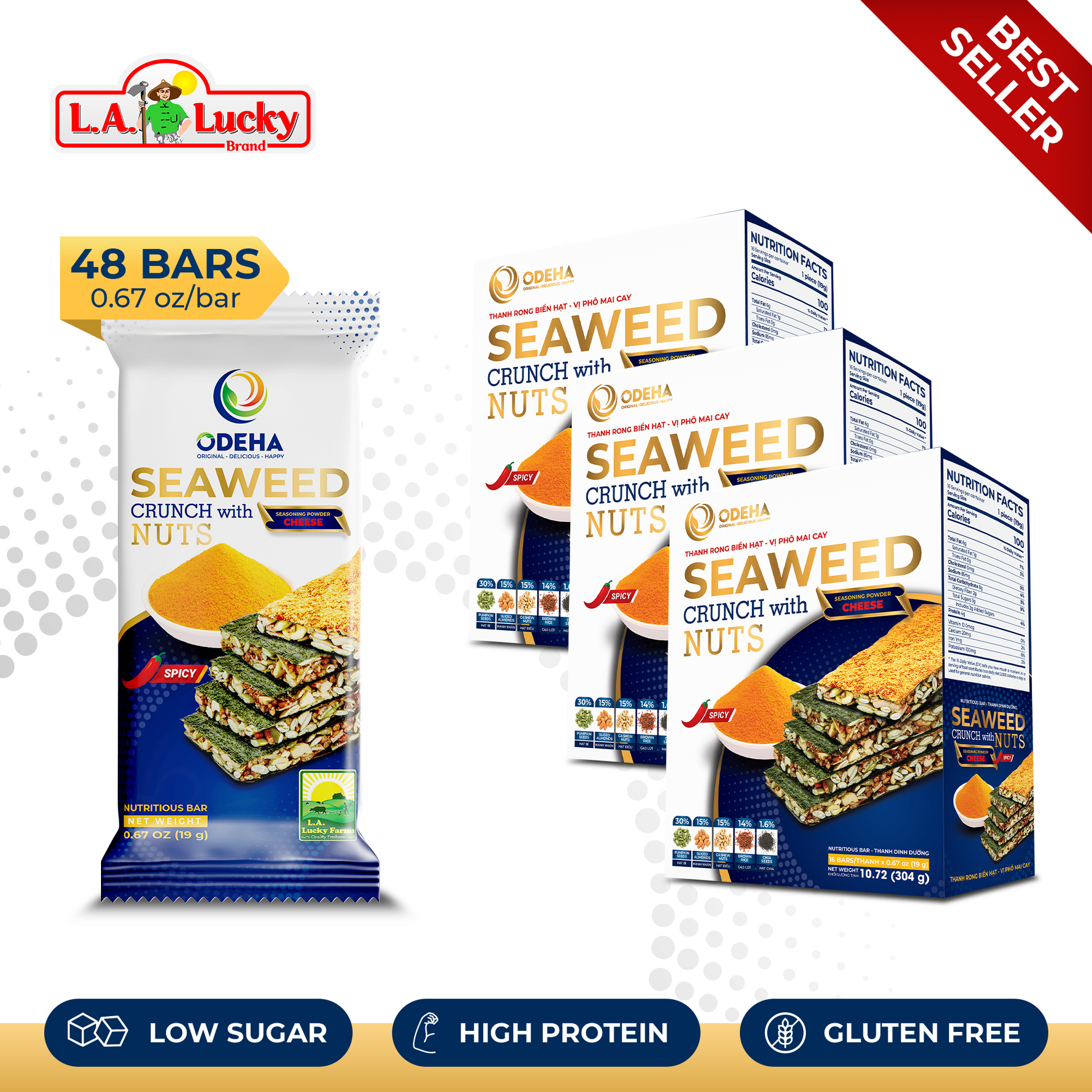 ODEHA Seaweed Crunch with Nuts – Spicy Cheese Taste – Pack of 3
